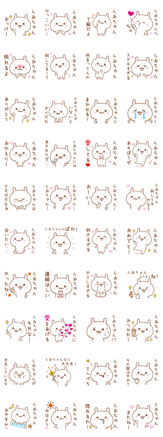 ともだち、家族、恋人など、大切な「らおちゃん」へ送る、ウサギの名前スタンプです。らお/ラオ