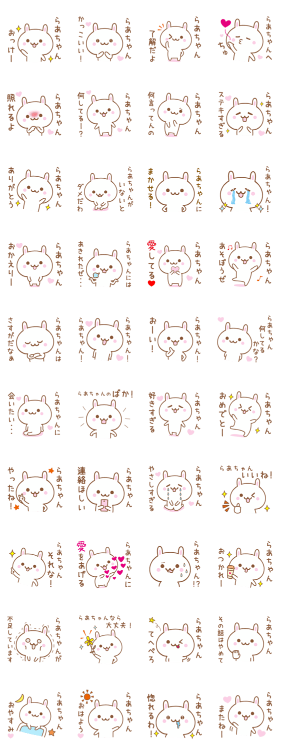 ともだち、家族、恋人など、大切な「らあちゃん」へ送る、ウサギの名前スタンプです。