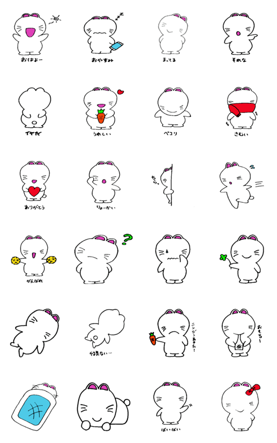白ネコのあいうえお・・・ってるスタンプ