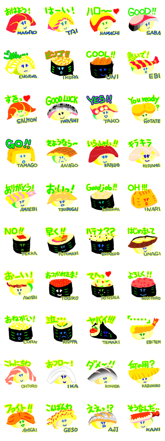 | スタンプ説明 | It is a sushi variety of 40. Is delicious. |