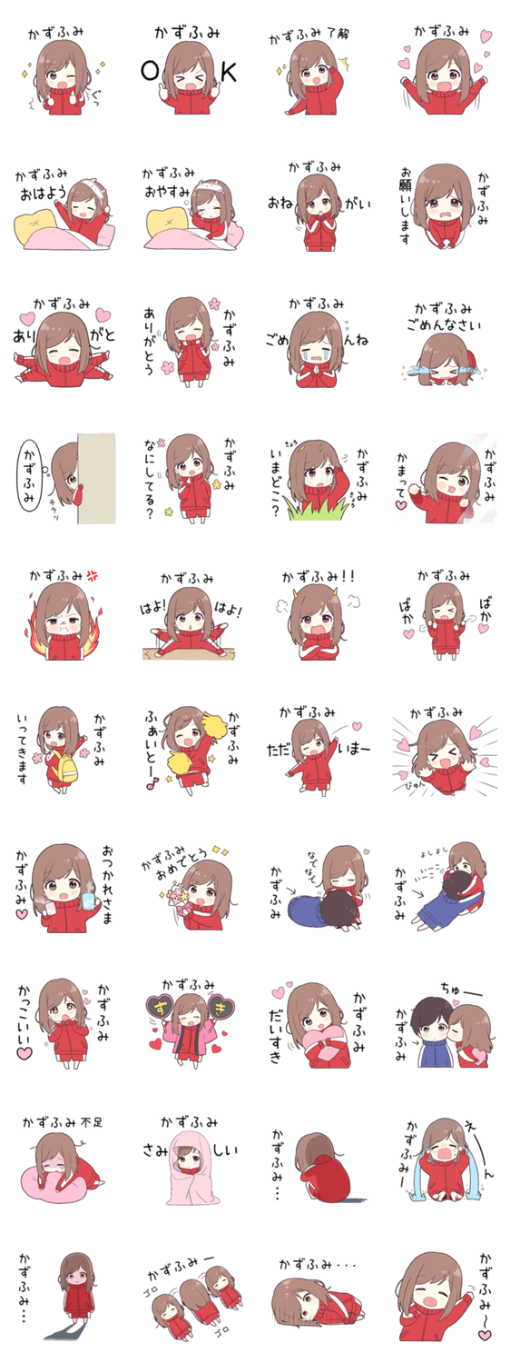 | スタンプ説明 | 【かずふみ】に送る専用のジャージちゃんスタンプ第1弾です。大好きな「かずふみ」に呼びかけます。 |