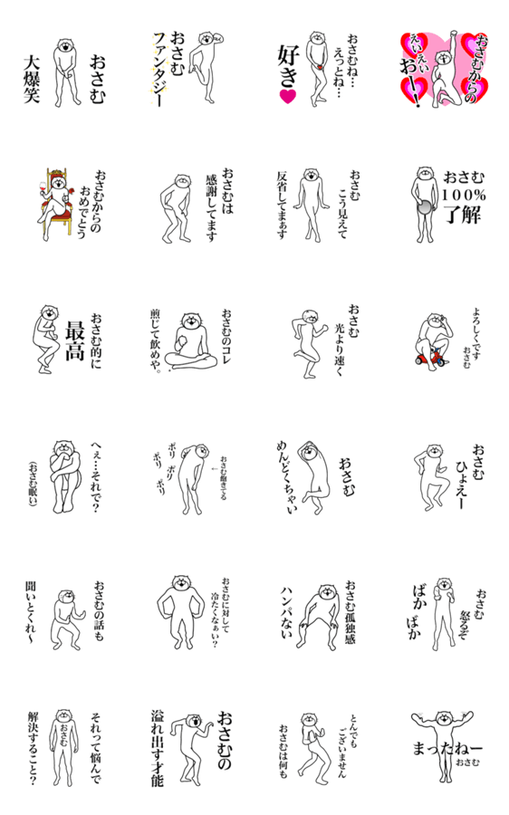 | スタンプ説明 | おさむくんが使える面白い動く名前スタンプ♪修.功.一.治.敦.司.靖.理.脩.平.収.統.紀.京.長生.耕.修武.士.御.鎮など世界中のオサムさんに届け! |