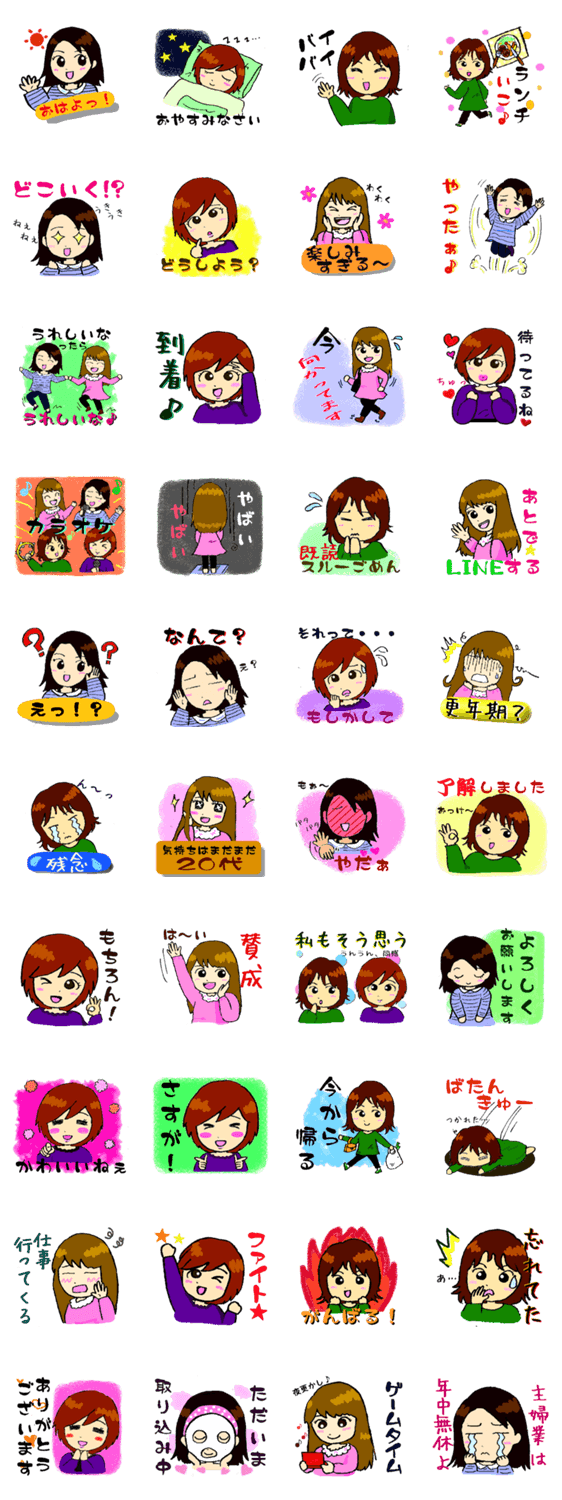 家事に育児に忙しいママ達の息抜きのひとつがママ友とのトーク♪お気楽主婦たちの日常を、日頃のトークで使いやすいスタンプにしました。