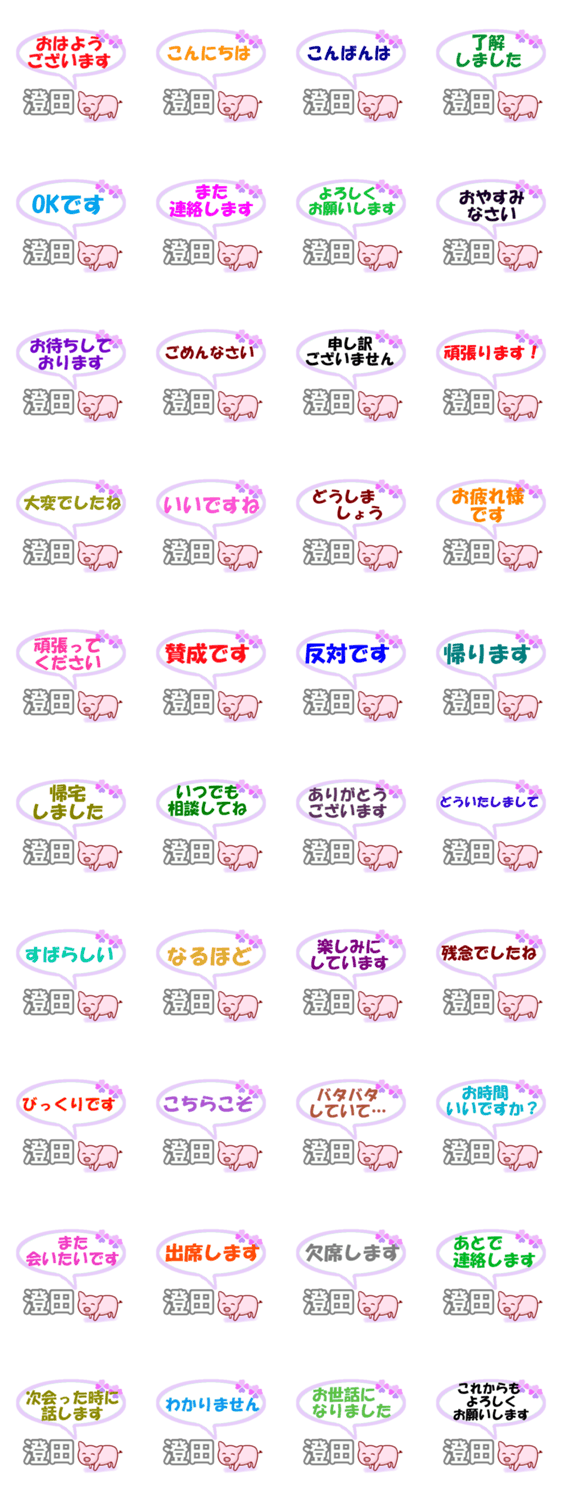 澄田「すみた」さん専用。おはようございます、了解、出席、欠席、賛成、反対など大人の丁寧な日常会話、連絡用にどうぞ