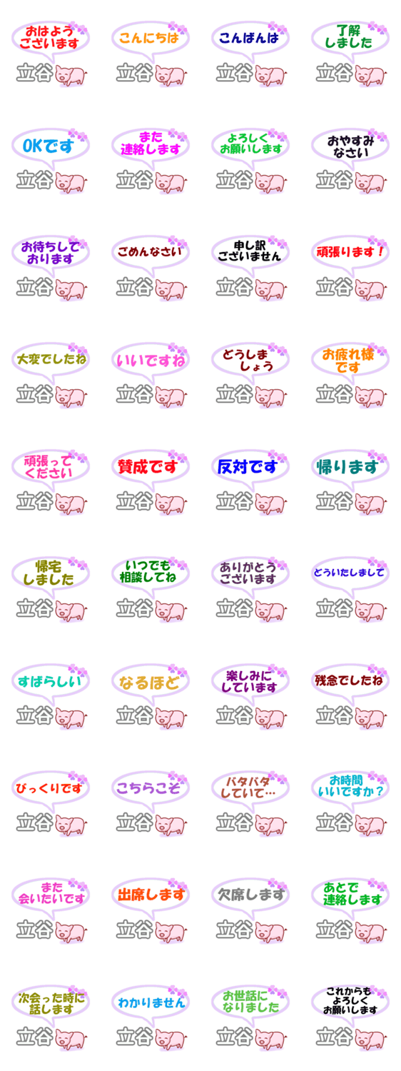 立谷「たちや」さん専用。おはようございます、了解、出席、欠席、賛成、反対など大人の丁寧な日常会話、連絡用にどうぞ