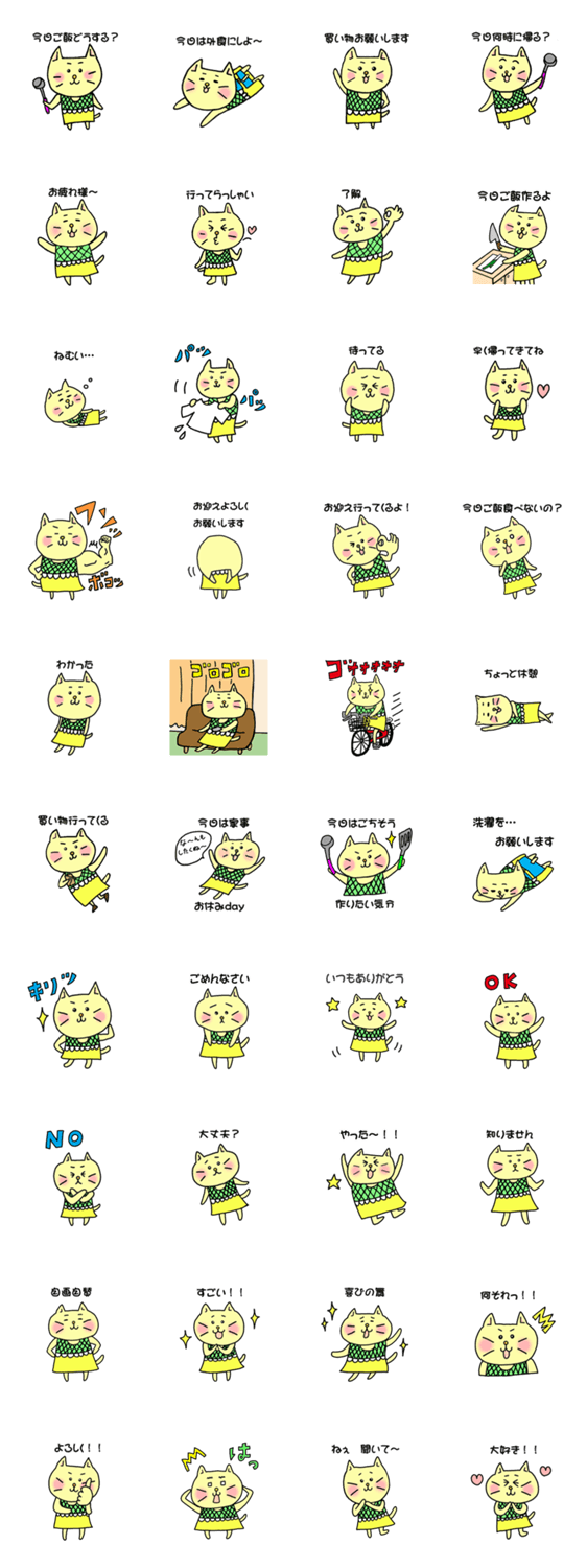 毎日家事を頑張る主婦/主夫の為のネコちゃんスタンプです。