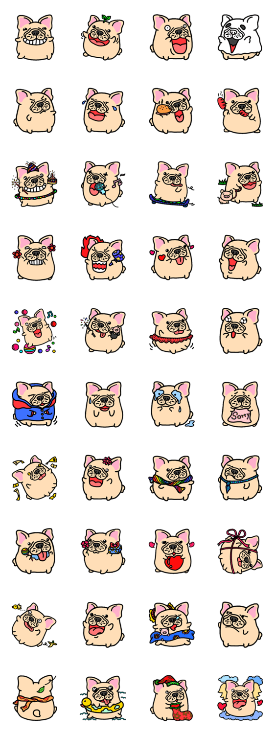 | スタンプ説明 | Charming and lovely dogs. Let's join the French Bulldog World. |