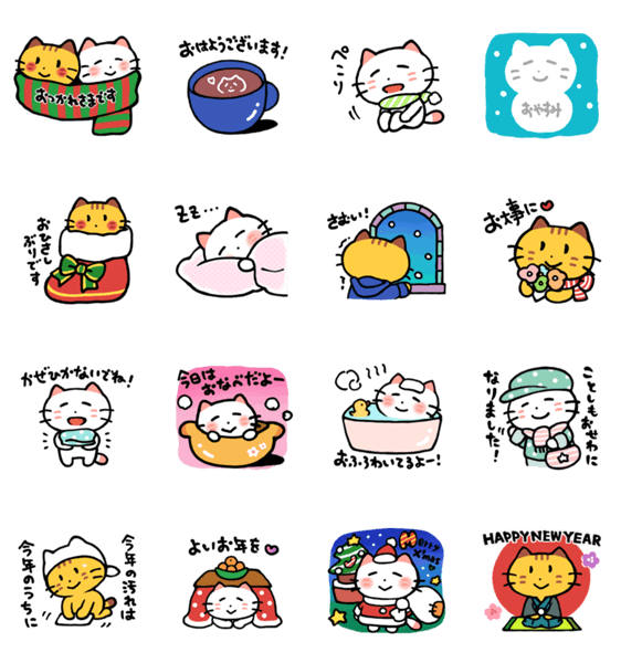 きなことこむぎの冬スタンプです。