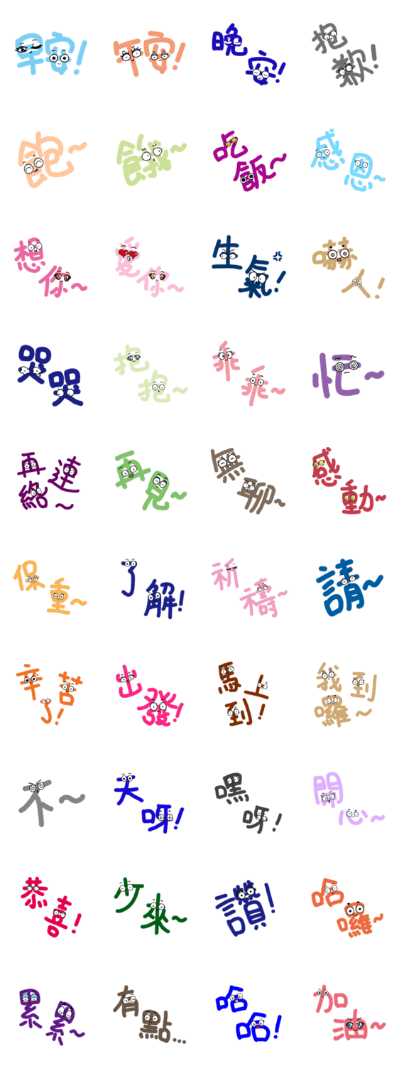 | スタンプ説明 | Cute eye text.Only text is boring.Add some cute big eyes. |