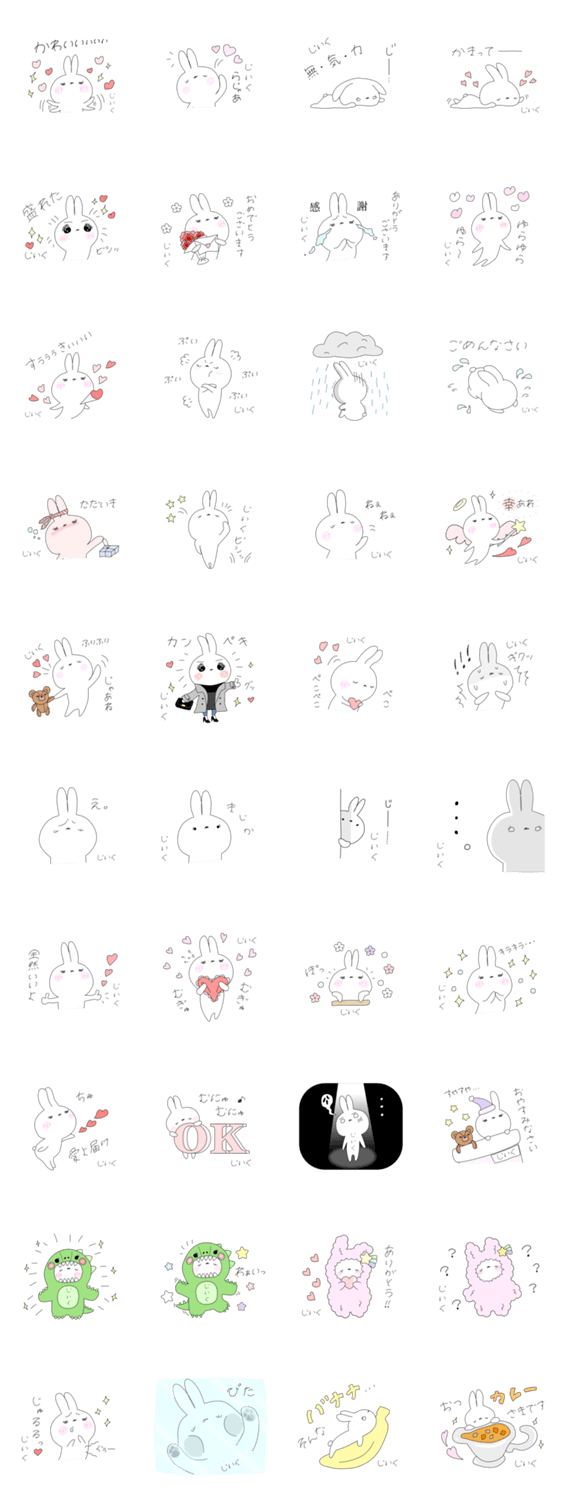 | スタンプ説明 | 名前スタンプです。もちもちの可愛いうさぎのらびちゃん。家族、友達、彼氏、彼女との会話に使ってください。じぃく,ジィク |