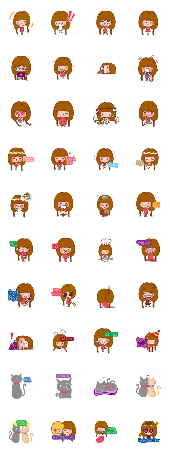 | スタンプ説明 | A happy and energic girl with braided hair will cheer up your days. |