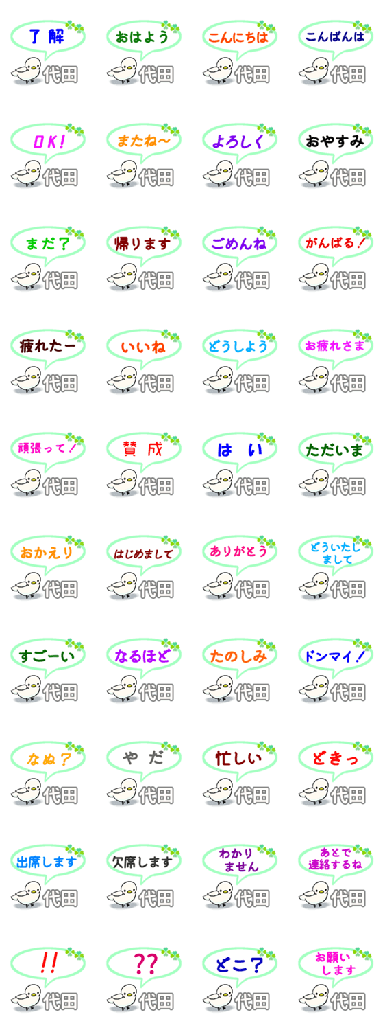 おはようございます、了解、出席、欠席、賛成など大人の丁寧な日常会話代田「しろた」さん専用。連絡用にどうぞ