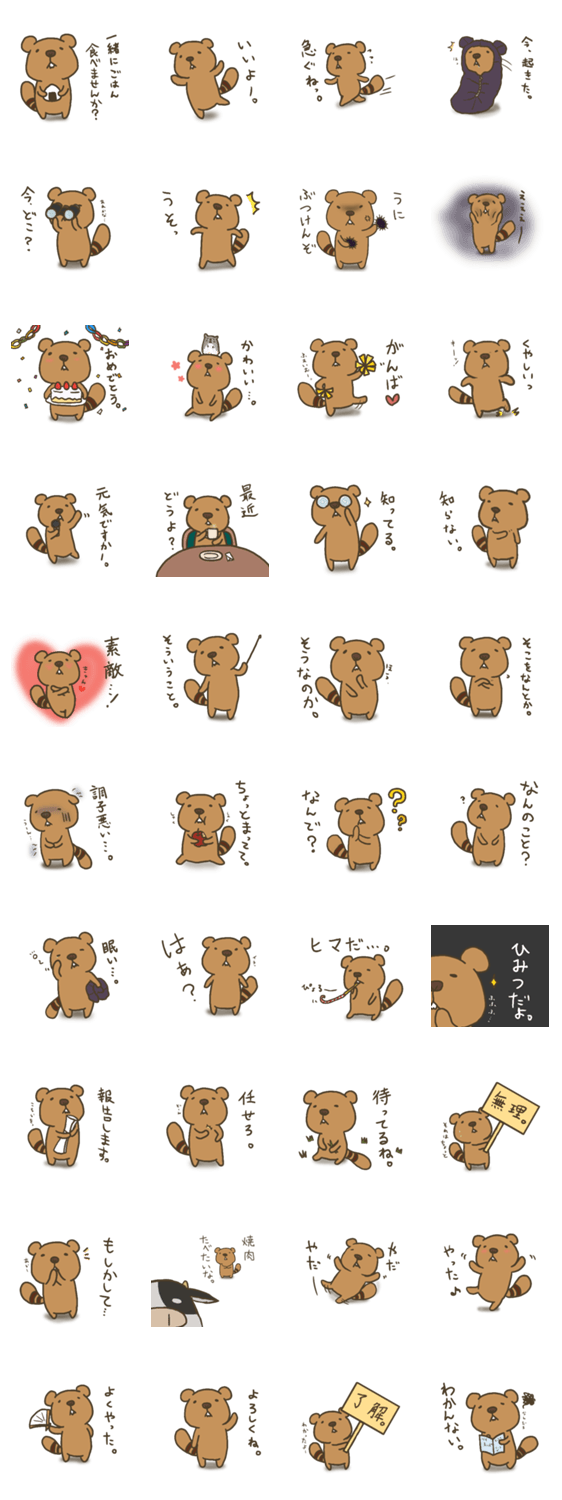 よこしましっぽが特徴のよこしまりすのスタンプその2。 50音順で並んでます。