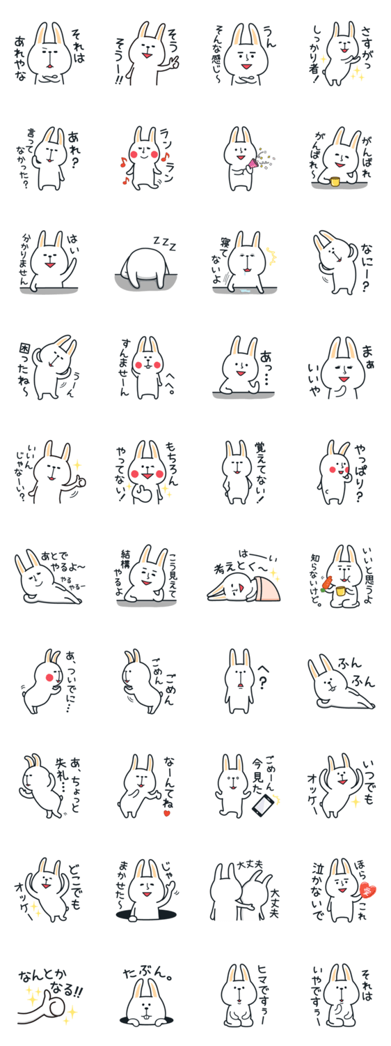 「うさぎやん。」シリーズ、パート3!パート3は、ちょっといい加減になったうさぎがお返事。テキトーだけど楽しく生きる人にちょうどいいスタンプ!
