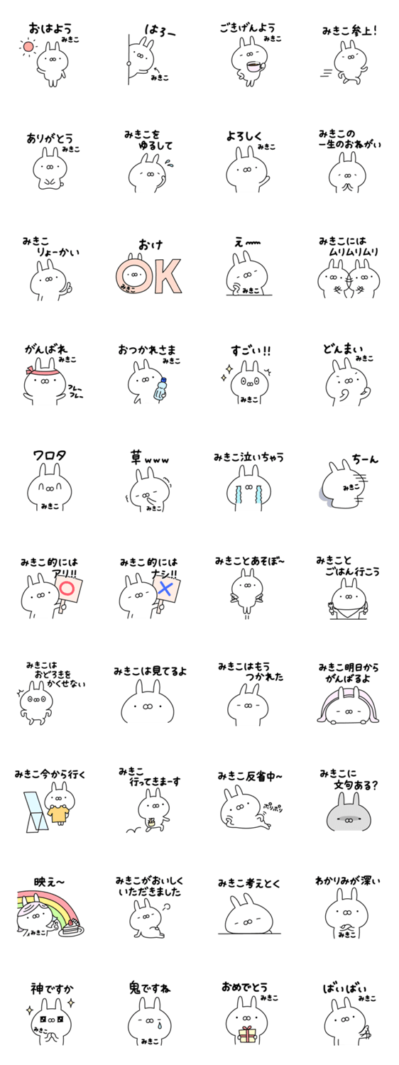 「みきこ」シンプルうさぎ -LINEスタンプマニア