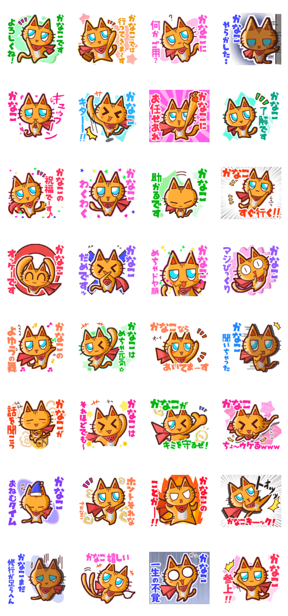 | スタンプ説明 | ゆっけ。が贈る【かなこ】用名前スタンプ01です。友達や恋人、グループのやりとりにぜひ。《ゆっけ。のアニぱ!》01「ヒーローになりたいねこ」のスタンプです。 |