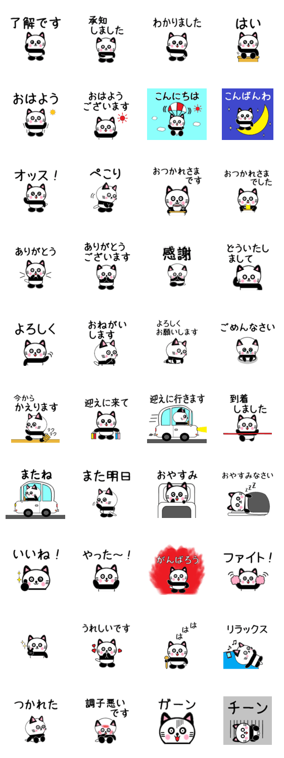 スタンプ説明 パンダカラーのねこのスタンプです。基本編。