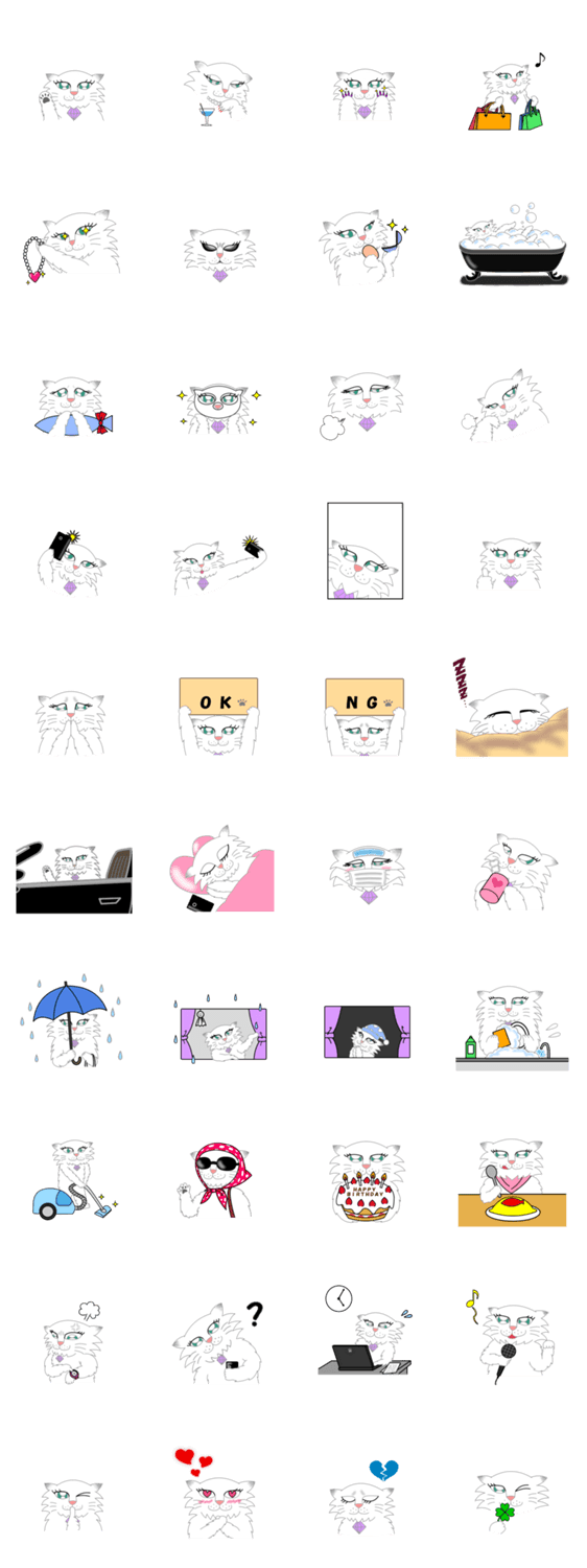 白ネコのあいうえお・・・ってるスタンプ