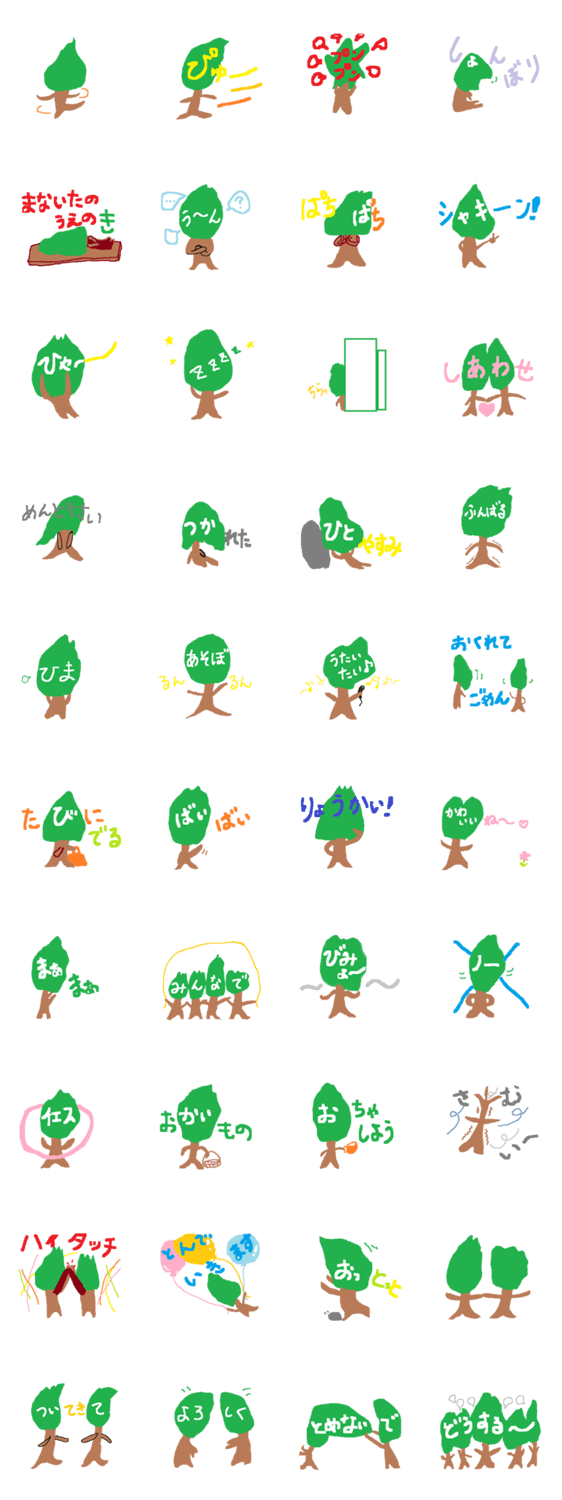 シンプルな木があなたの気持ちを伝えます。日常のちょっとした場面で使える可愛いスタンプです。