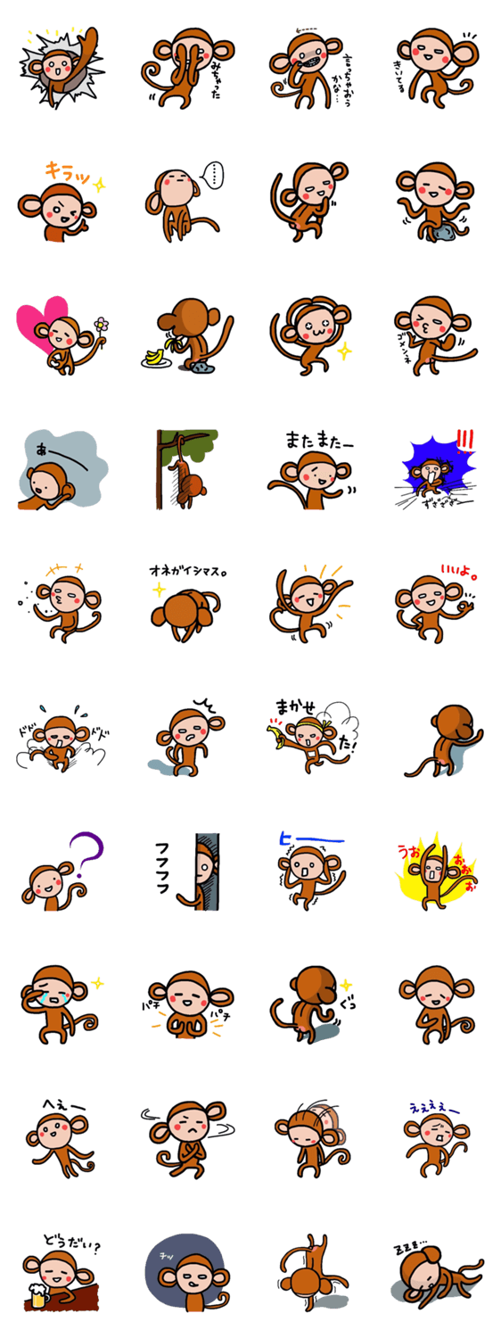 着ぐるみなのかさるなのか…いろんなリアクションをとってくれます。ゆるーく返信したい時にどうぞ。