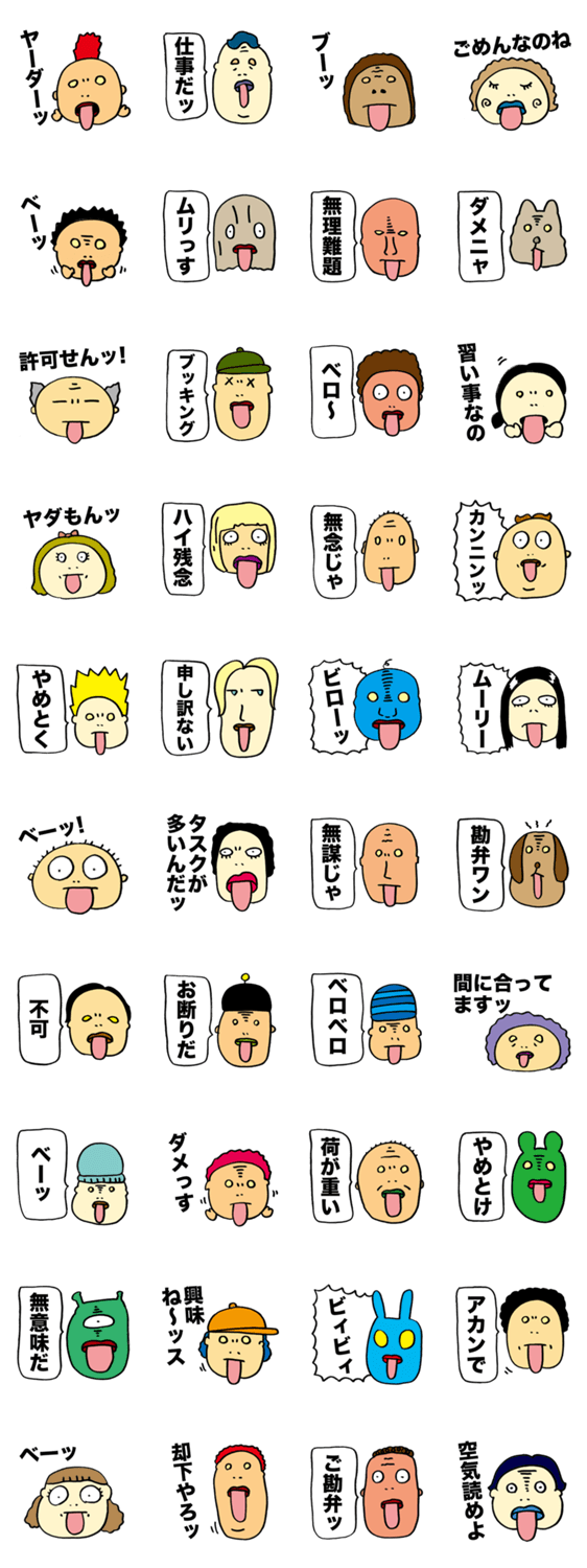 あっかんベー顔で断りにくいことをスパッと断れる便利なスタンプ。