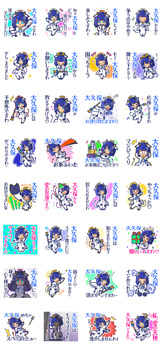 | スタンプ説明 | ゆっけ。が贈る【大久保】用名前スタンプ13です。友達や恋人とのやりとり、グループの連絡にぜひ。《きぐるみじょし》02「天使なモーちゃん」です。 |