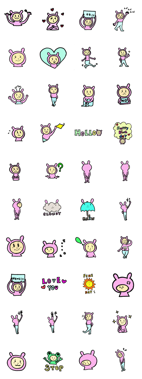 脱力系スタンプ、うさぐるみさんです。つぶらな瞳がうさぐるみさんの魅力です。