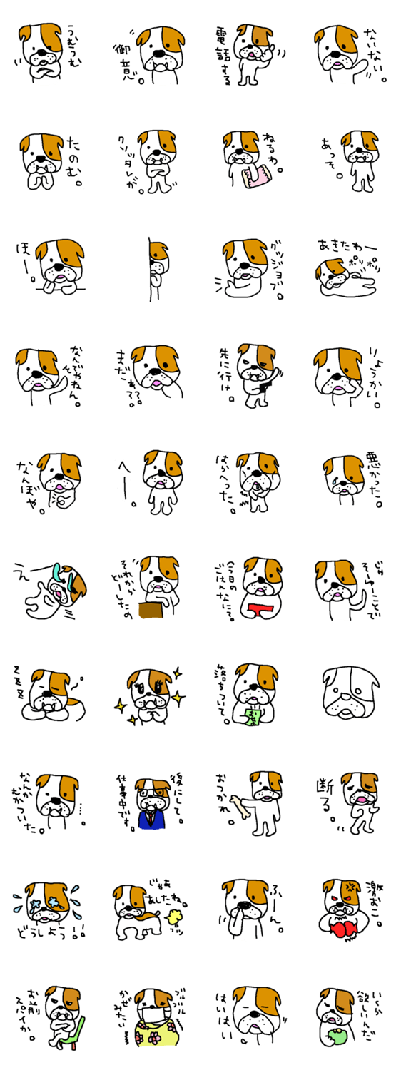 手書きのブル山さん(ブルドッグ)のスタンプです。