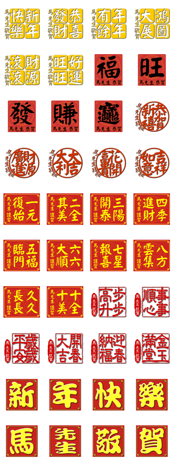 | スタンプ説明 | Auspicious words of Chinese New Year from Mr. Ma. |