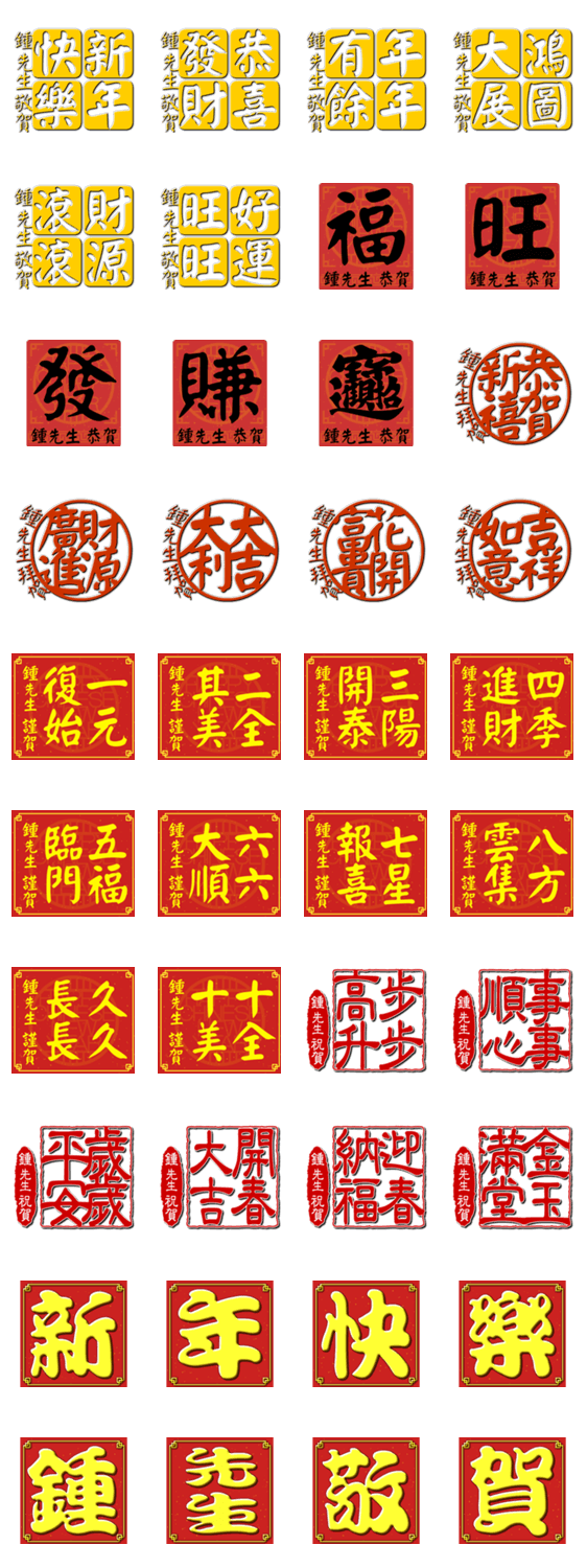 | スタンプ説明 | Auspicious words of Chinese New Year from Mr. Chung. |