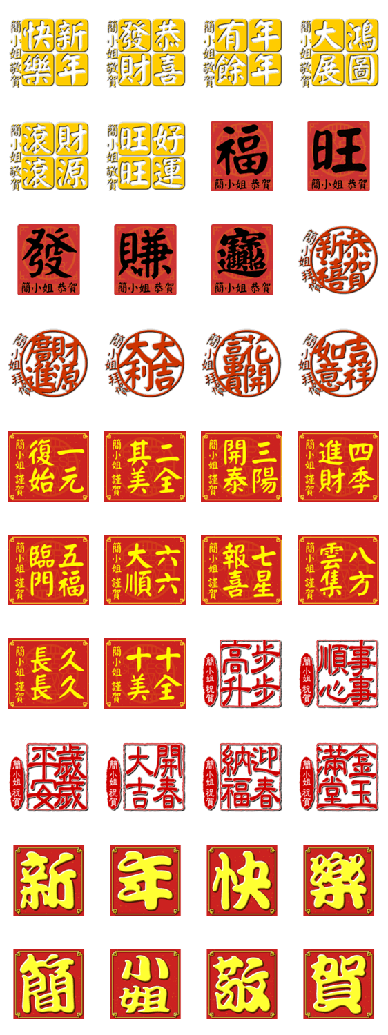 | スタンプ説明 | Auspicious words of Chinese New Year from Miss Chien. |