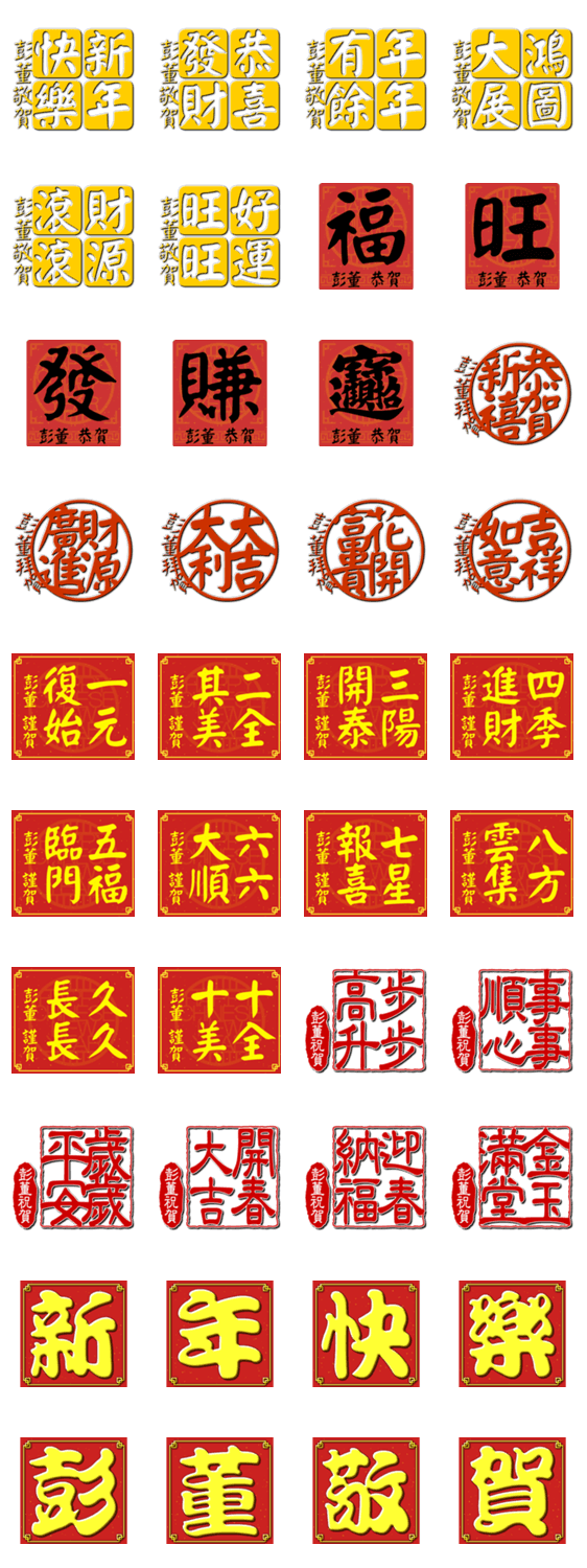 | スタンプ説明 | Auspicious words of Chinese New Year from Peng. |