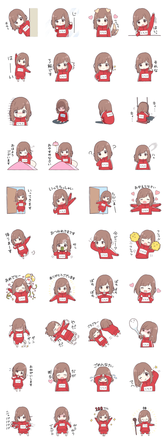 | スタンプ説明 | りちか専用のスタンプ第1弾です。ジャージのゼッケンに「りちか」の名前が入っています。 |