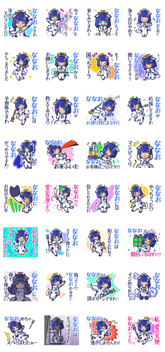 | スタンプ説明 | ゆっけ。が贈る【ななお】用名前スタンプ13です。友達や恋人とのやりとり、グループの連絡にぜひ。《きぐるみじょし》02「天使なモーちゃん」です。 |