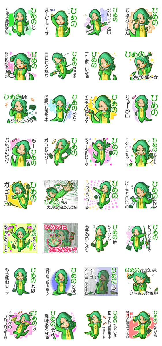 | スタンプ説明 | ゆっけ。が贈る【ひめの】用名前スタンプ15です。友達や恋人とのやりとり、グループの連絡にぜひ。《きぐるみじょし》04「バブルなヘビねーさん」のスタンプです。 |