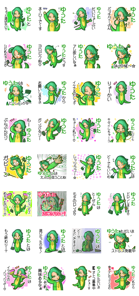 | スタンプ説明 | ゆっけ。が贈る【ゆうた】用名前スタンプ15です。友達や恋人とのやりとり、グループの連絡にぜひ。《きぐるみじょし》04「バブルなヘビねーさん」のスタンプです。 |