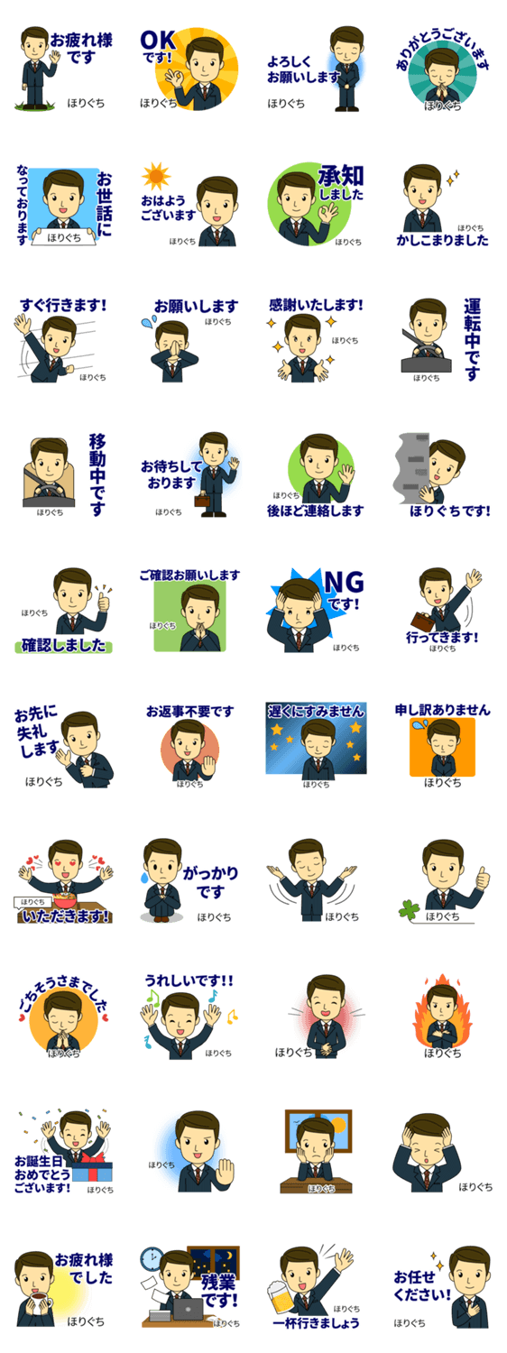 | スタンプ説明 | 仕事や大人の敬語や社会人の丁寧な挨拶☆職場/会社/アイシス作【ほりぐち/ホリグチ/堀口/掘口/洞口】おなまえ/名字/苗字/男性/スタンプ/専用/お名前入り/ビジネス/おし |
