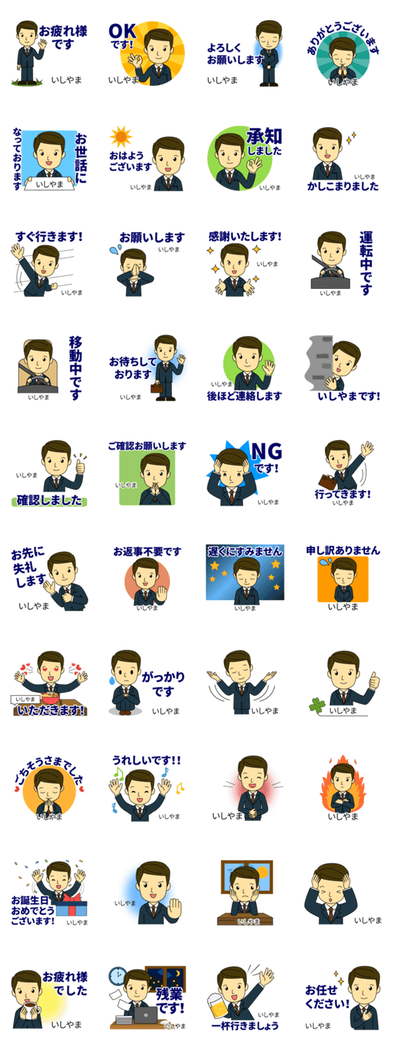 | スタンプ説明 | 仕事や大人の敬語や社会人の丁寧な挨拶☆職場/会社/アイシス作【いしやま/イシヤマ/石山/岨/石耶麻】おなまえ/名字/苗字/男性/スタンプ/専用/お名前入り/ビジネス/職場 |