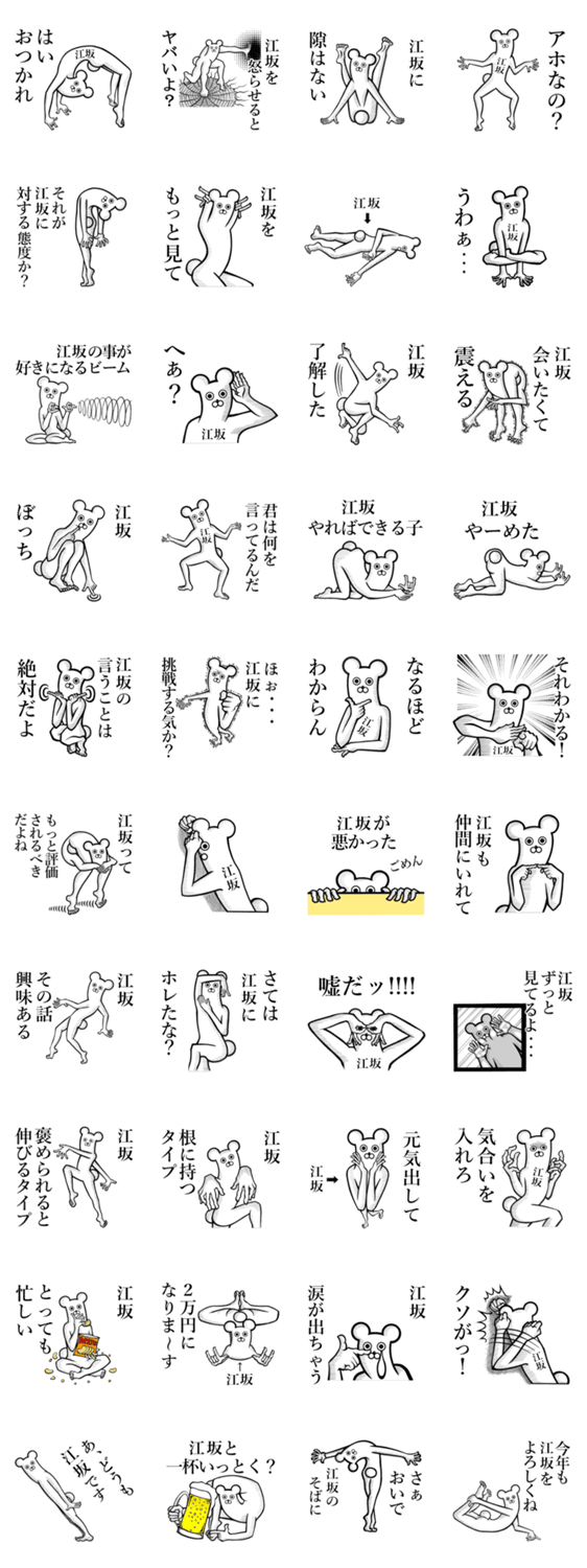 | スタンプ説明 | 名前が【江坂/えさか】スタンプ。江坂/エサカ/えさちゃん/エサチャン/江坂君/えざかくん/エザカクン/えさりん/エサリン/えさるん/エサルン/えさっち/えさしー/なぽごれ |