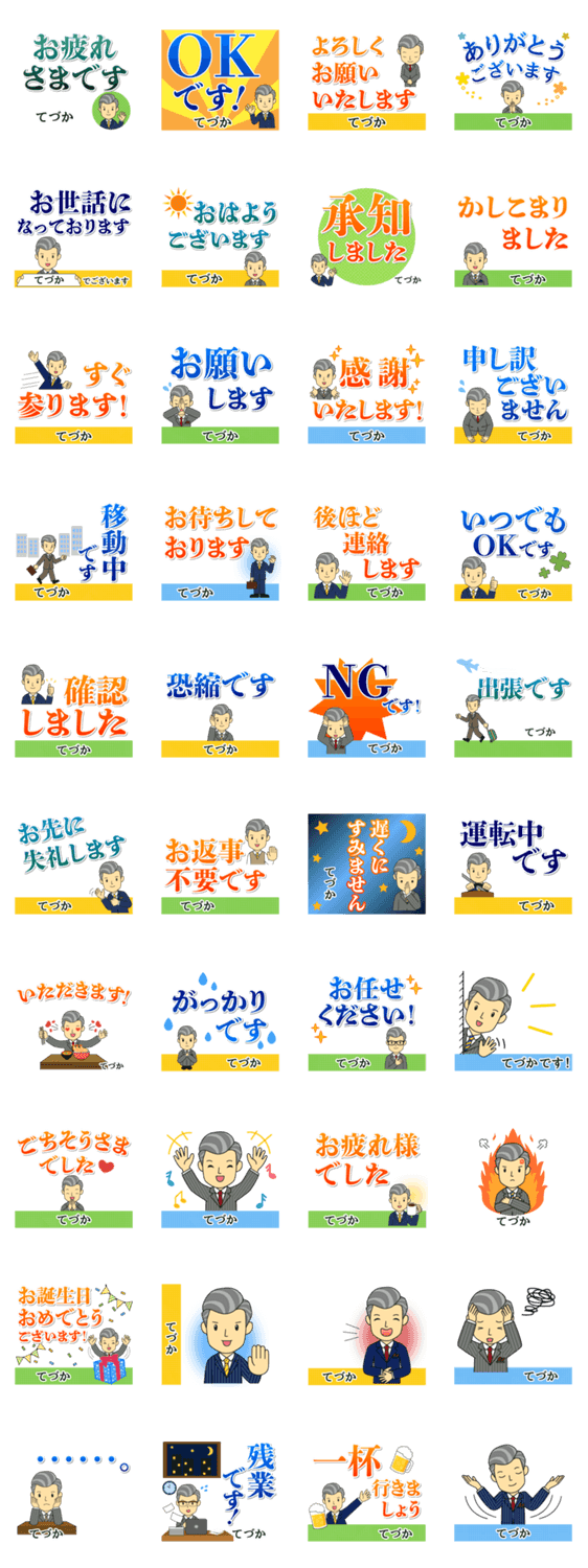 | スタンプ説明 | 仕事や大人の敬語や社会人の丁寧な挨拶☆紳士/会社/アイシス作【てづか/テヅカ/手塚/手墳/手捲/手束】おなまえ/名字/苗字/男性/スタンプ/専用/お名前入り/ビジネス/職場 |