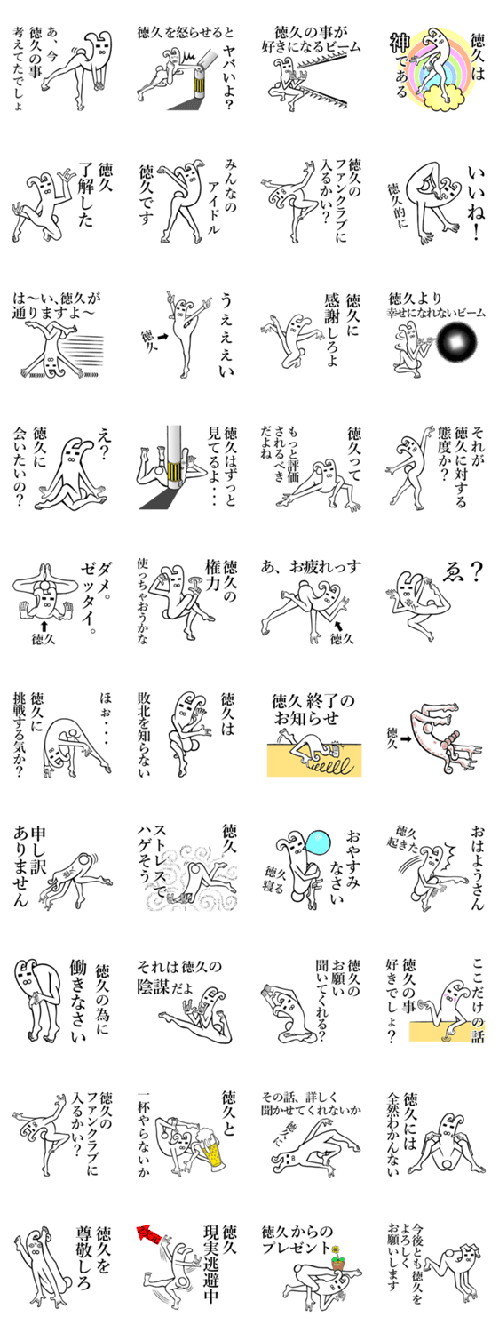 | スタンプ説明 | 名前が【徳久/とくひさ】スタンプ。徳久/トクヒサ/とくちゃん/トクチャン/徳久君/とくながくん/トクナガクン/とくお/とく/のりひさ/なるひさ/とくっち/とくしー/子猫旅館 |