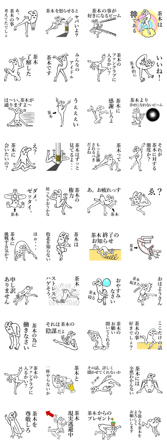 | スタンプ説明 | 名前が【茶木/ちゃき】スタンプ。茶木/チャキ/ちゃーちゃん/チャーチャン/茶木君/ちゃぎくん/チャギクン/さき/サキ/さぎ/サギ/ちゃのき/チャノキ/ちゃっち/子猫旅館 |