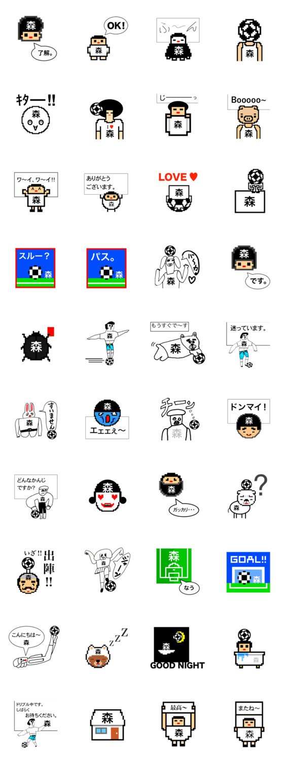 サッカー(フットサル)を愛する森(もり・モリ)さん専用の名前スタンプです。