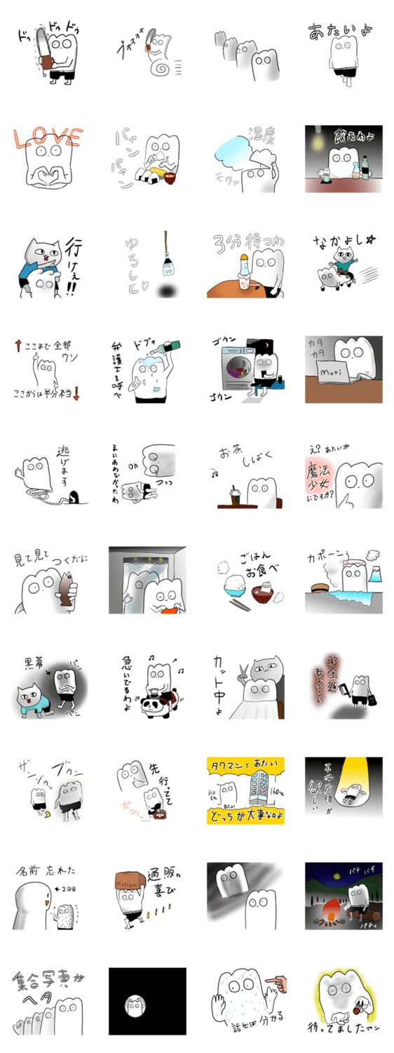 白ネコのあいうえお・・・ってるスタンプ