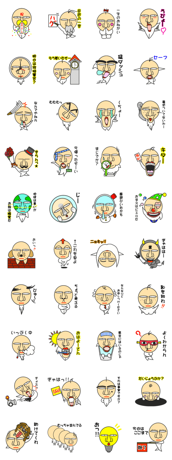 ちょっとした失笑や笑いを期待したい時に使いたいスタンプ第2弾。可愛くもなく、キモすぎるわけでもない。そんな中途半端なおじさんギャグスタンプ。いらないスタンプです