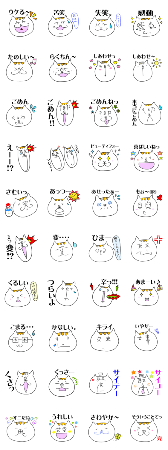 | スタンプ説明 | 漢字って面白い!見方を変えると猫の顔に大変身!ちょっとした遊び心のあるスタンプです。 |