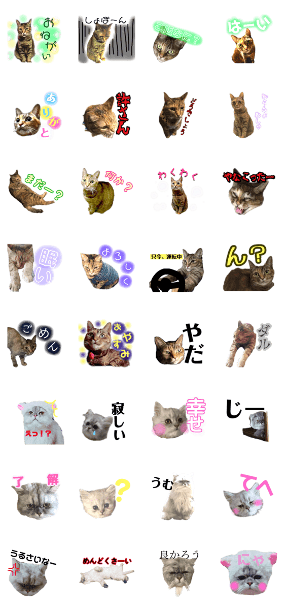 白ネコのあいうえお・・・ってるスタンプ