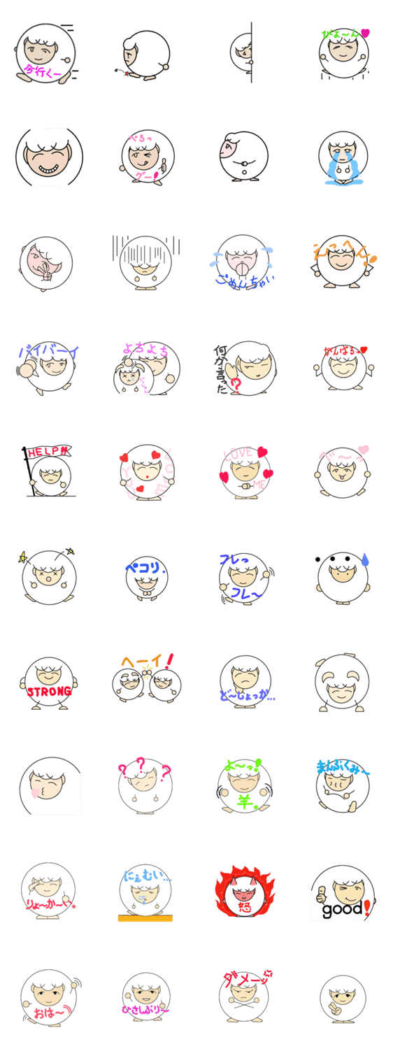 | スタンプ説明 | 人形なのか?ひつじなのか?可愛いひつじが、みんなの代わりに気持ちを伝えてくれるよ! |