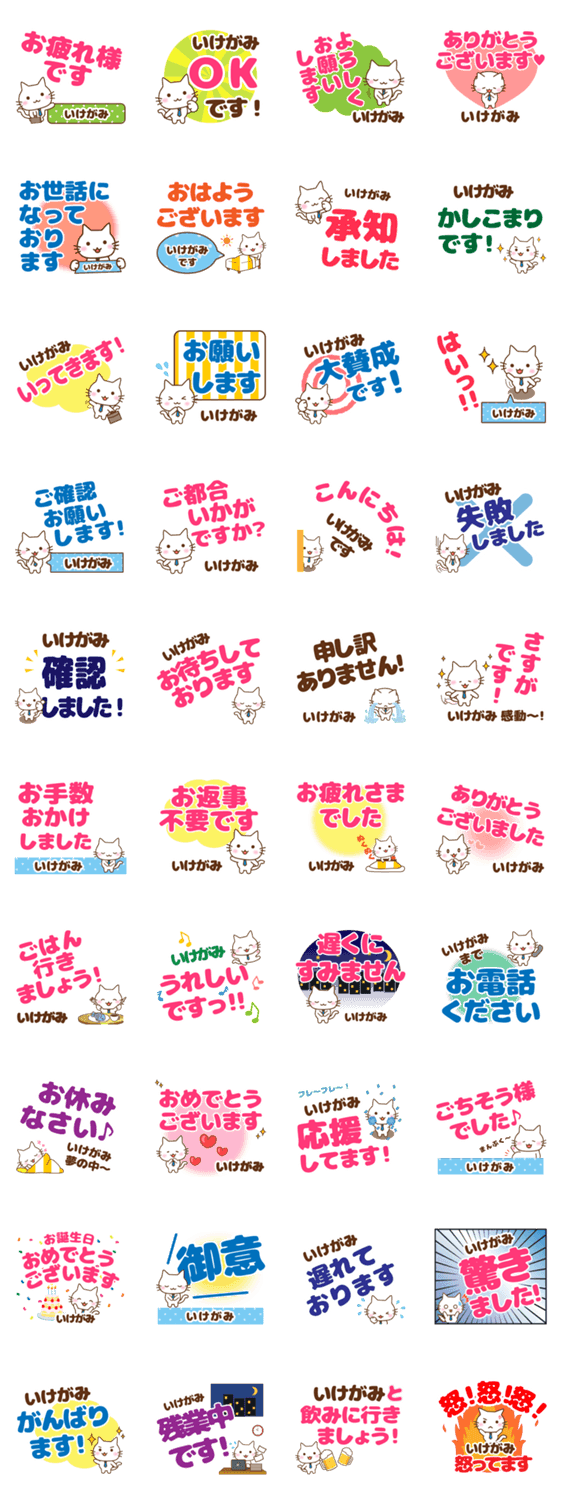 | スタンプ説明 | 仕事や社会人や大人の丁寧敬語☆猫/ねこ/ネコ/会社/アイシス作【いけがみ/イケガミ/池上/井家上/池加美/池神/井家/生香美】おなまえ/名字/苗字/男女/スタンプ/専用/職場 |
