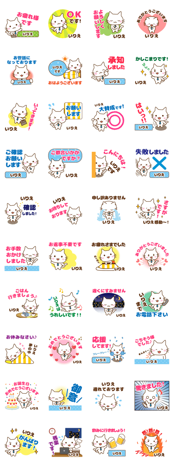 | スタンプ説明 | お仕事や大人の丁寧敬語☆ネコ/ねこ/猫/アイシス作/会社/OLパート[入江/いりえ/イリエ/入家/入栄/杁江/江/煎栄/煎江/入枝/井理絵/伊理依/依里恵/衣里枝]おなまえ/名字 |